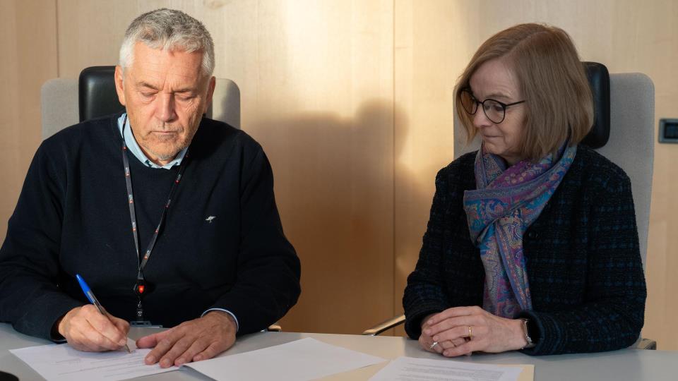 Her signerer de avtalen Med signaturene til kommunedirektør Kjell Hugvik i Bodø kommune og administrerende direktør Siri Tau Ursin for Nordlandssykehuset, er selskapet Inovac... Publisert 10.11.2025 kl. 14.51