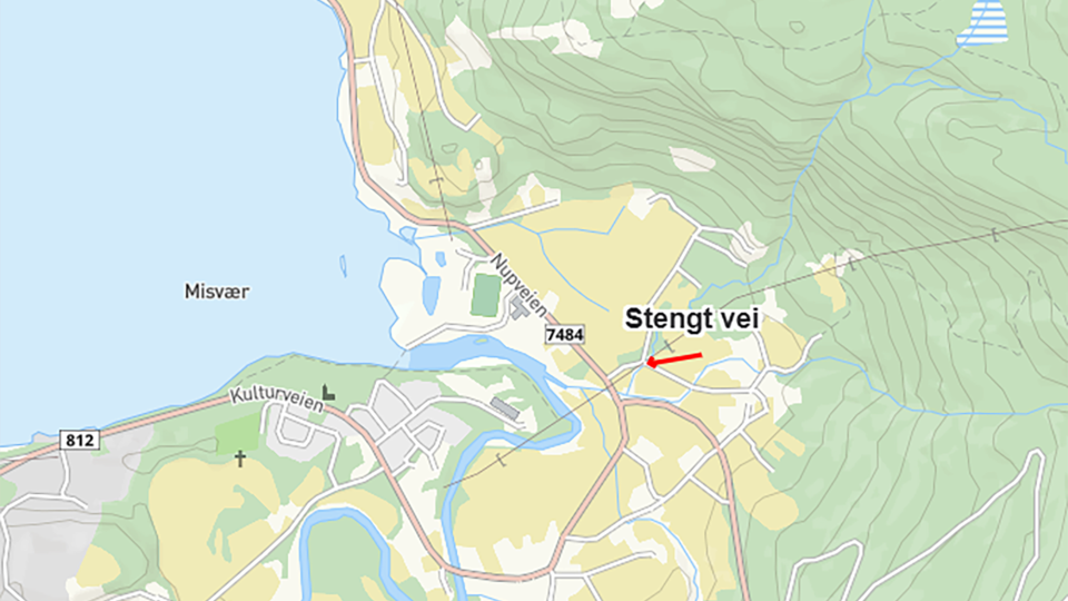 Oppegårdveien i Misvær er stengt Det er for tiden ikke mulig å angi når veien blir åpnet. Publisert 19.03.2026 kl. 08.18