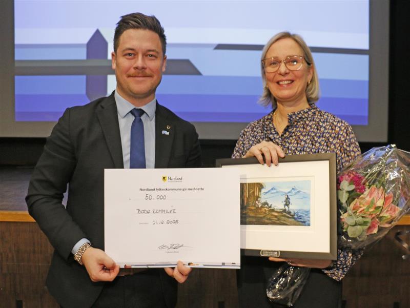 Prisen som består av et kunstverk, diplom og 50.000 kroner ble mottatt av Gudrun Hagen, prosjektleder i Bodø kommune.