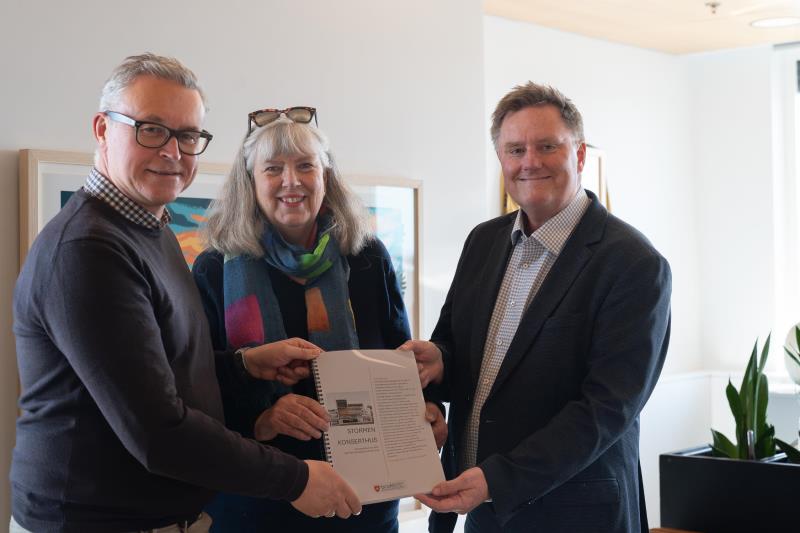 Nå har arbeidsgruppen levert sine innspill om Stormen konserthus I bystyremøtet i september ble det vedtatt å nedsette en arbeidsgruppe for Stormen konserthus. Torsdag 16. april leverte de sitt forslag.Arbeidsgruppens mandat var å drøfte og gi innspill til Bodø kommune på organiseringen av Stormen konserthus. 16. april tok ordfører Odd Emil Ingebrigtsen imot gruppen på rådhuset hvor de overrekte sitt forslag.Rapporten vil bli gjennomgått av kommunedirektøren og så legges frem til bystyret for behandling. – Jeg vil takke arbeidsgruppa for arbeidet som er gjort. Denne rapporten gir bystyret et godt grunnlag for avgjørelser knyttet til den langsiktige styringen av Stormen. Stormen har preget kulturlivet i over 10 år. Derfor er det helt naturlig av oss å se nærmere på organiseringen, slik at vi er sikker på Stormens bidrag til kulturlivet i Bodø fungerer optimalt og at vi får mest mulig igjen for skattepengene. Jeg ser frem til å lese og debattere rapporten i bystyret, sier ordfører Odd Emil Ingebrigtsen.Arbeidsgruppen har bestått av:Nina Badendyck, lederElisabeth Henriette Hunstad, konstituert direktør i Stormen konserthusRita Lekang, styreleder i Stormen konserthusMona EiliertsenCharlotte RingkjøbMorten JakhellnHege Ness Publisert 16.04.2026 12.23 Sist endret 16.04.2026 12.23