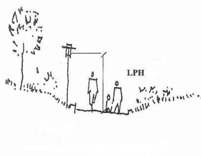 Tegnings som viser plassering av gatelys i Kat.2 Gater i boligområder i og utenfor byen, vei- og gatelys generelt - Klikk for stort bildeKategori 2: Gater i boligområder i og utenfor byen, vei- og gatelys generelt