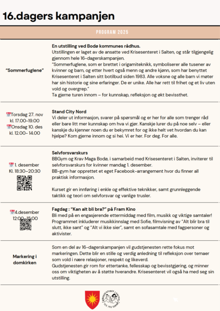 KRISESENTERET I SALTEN MARKERER 16- DAGERSKAMPANJEN MOT VOLD MOT KVINNER