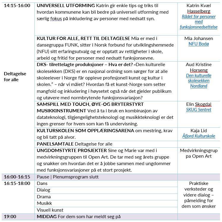 Programoversikt - Kompetanseheving Open Art og Open Art Festival