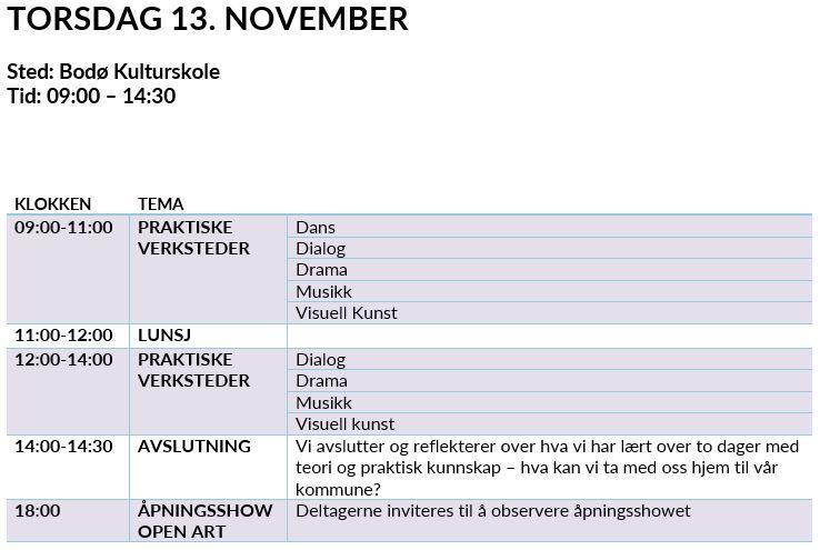 Torsdag 13. november - Kompetanseheving Open Art + åpning festival